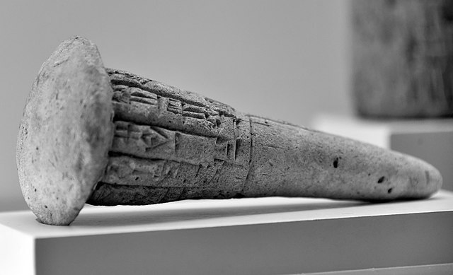 All images are from Wikimedia commons. From the top: relief from the palace in Nimrud, Old Akkadian cylinder seal, the headdress of Queen Puabi, cylinder seal showing Inana, aerial photograph of Ur, the Disk of Enheduana, the Royal Game of Ur, foundation peg of Gudea, the Stele of the Vultures, plaque from Nippur, the Standard of Ur, ziggurat of Ur, the Burney relief, inscription of Naram-Sîn.